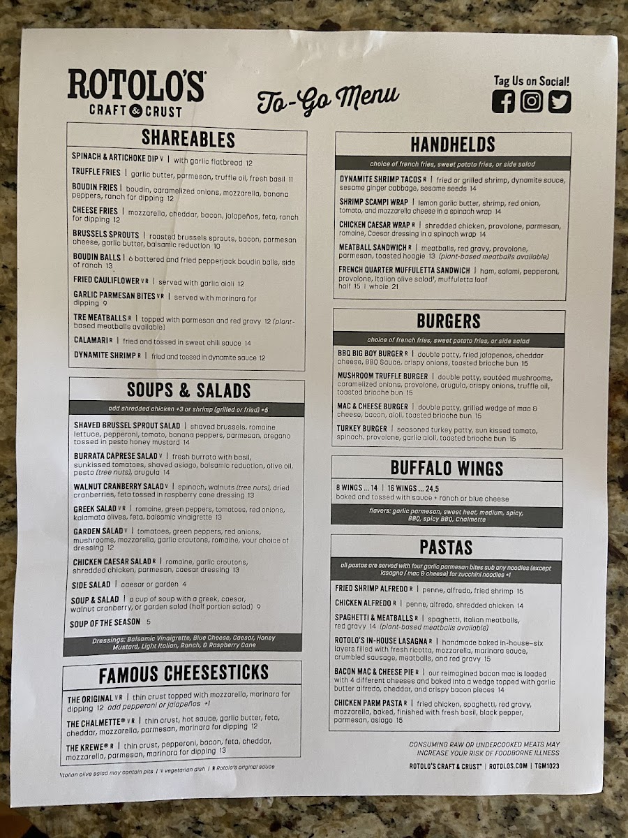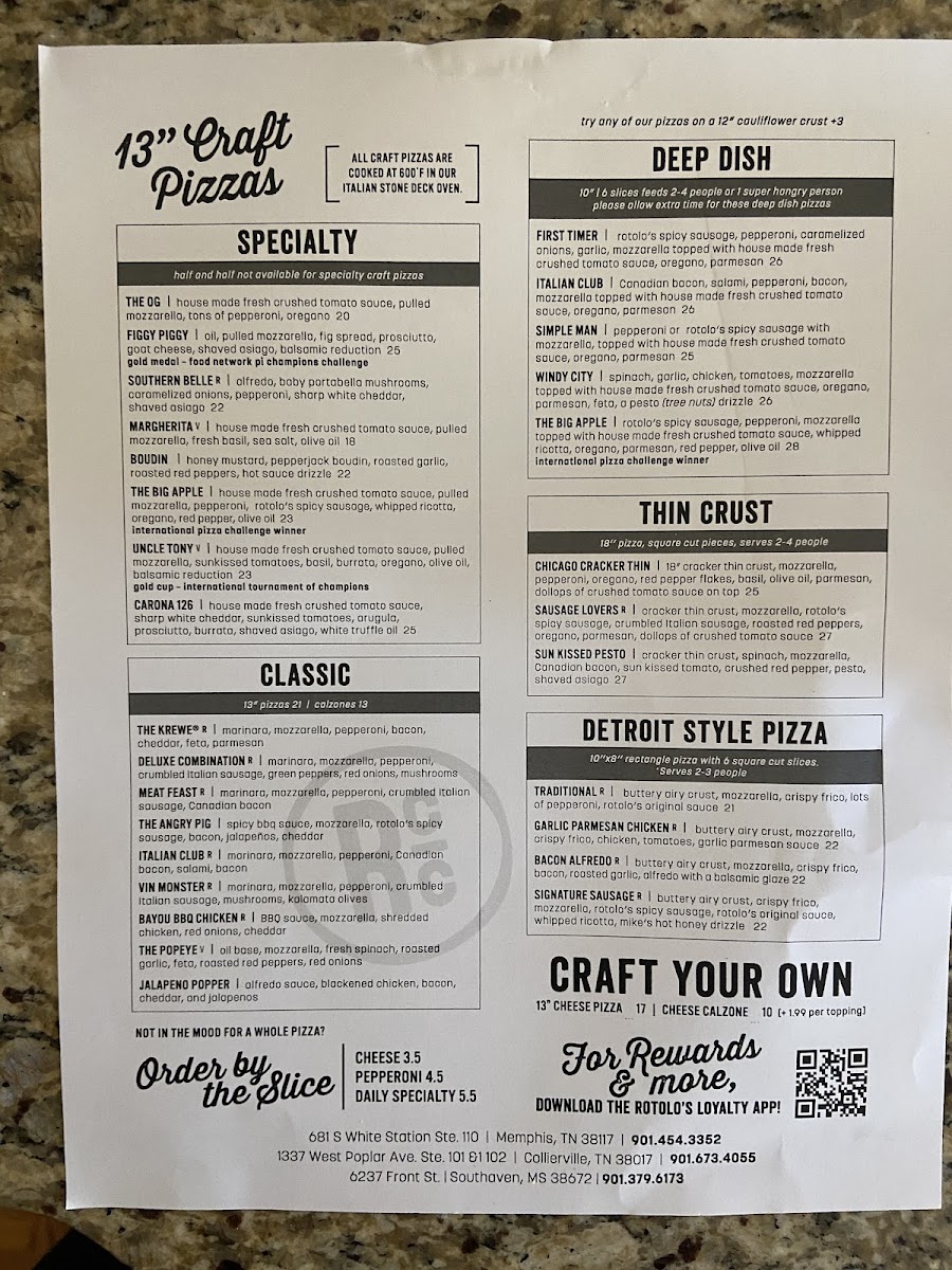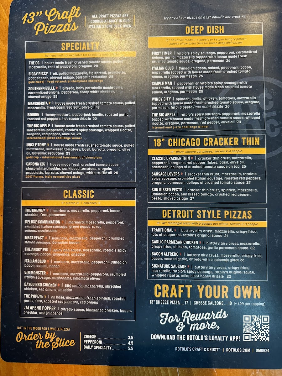 Welcome to Rotolo's Craft & Crust, where culinary creativity meets comfort food! Nestled in Collierville, TN, this vibrant eatery emphasizes crafted pizzas and artisanal dishes designed to delight every palate. Patrons rave about the deep dish pepperoni pizza, renowned for its rich sauce and robust flavors, while the dynamite shrimp and spinach artichoke dip have become crowd favorites for their bold tastes and generous portions.